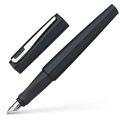Trendsetter: The Schneider Tomo youth fountain pen is winner of the German Design Award and delivers a combination of design and sustainability claims Functional and aesthetically pleasing: the minimalist design fountain pen with clean matte surface is available in four trendy colour variations. An eye-catcher for any pencil case and desk Strong inner values: in the spirit of environmental protection, the cap and barrel of the modern writing instrument are made from 58% recycled plastic Comfortable and high quality: ergonomic grip with rubberised soft-touch surface for fatigue-free and non-slip handling. High-quality stainless steel nib with iridium grain for a smooth writing experience Box contents: Schneider Tomo fountain pen, 1 royal blue erasable ink cartridge, fountain pen in line width M, equally suitable for left- and right-handed users
