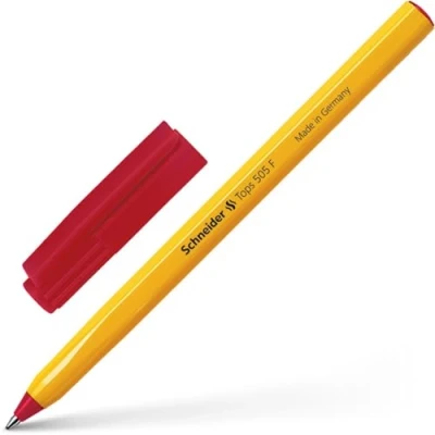 Schneider Tops 505 Ball point Pen, with cap, F, Red, Barrel, Yellow (Pack of 1)