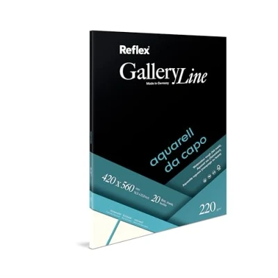 Schoellershammer watercolor paper 220 g / m2. Rough surface with felt marking. Natural white. Uncoated, aging resistant, acid free, recycled. Suitable for classic watercolor techniques, sketching and drawing with graphite, colored pencils, charcoal, chalk, oil pastel. Papersize: 42x56cm. 20-sheet drawing block.