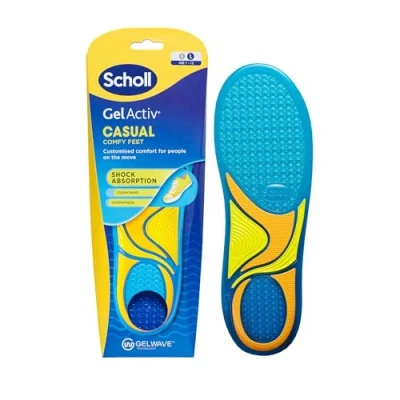STAY ON YOUR FEET LONGER: The Scholl GelActiv Casual Insoles have been designed for advanced support. With added springiness, slip them into your casual everyday shoes to help ease pressure on your feet all day long. DRY, FRESH & COOL ALL DAY: Enjoy fresh, comfortable feet thanks to the Scholl Freshfeet fabric coating which protects against unpleasant odours. SUPERIOR CUSHIONING: Our GelWave technology provides superior cushioning while absorbing the shock from walking on hard surfaces or standing up all day. SCHOLL QUALITY: For over 100 years Scholl has followed the values of company founder Dr. William Mathias Scholl with passion and dedication. To this day, Scholl promotes healthy, comfortable and beautiful feet. TRIM FOR A PERFECT FIT: Our smart shoe insoles for men are available L (7 - 12). Simply measure your foot against the gel insole and trim along the marked lines with scissors to get the perfect fit for your feet.