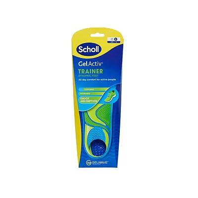 STAY ON YOUR FEET LONGER: The Scholl GelActiv Trainer Insoles have been designed to give all day comfort for active people. With added springiness, slip them into your sports shoes to help ease pressure on your feet all day long. DRY, FRESH & COOL ALL DAY: Enjoy fresh, comfortable feet thanks to the Scholl Freshfeet fabric coating which protects against unpleasant odours. SUPERIOR CUSHIONING: Our GelWave technology provides superior cushioning while absorbing the shock from every rep, set or game. SCHOLL QUALITY: For over 100 years Scholl has followed the values of company founder Dr. William Mathias Scholl with passion and dedication. To this day, Scholl promotes healthy, comfortable and beautiful feet. TRIM FOR A PERFECT FIT: Our trainer insoles for men are available in L (7 - 12). Simply measure your foot against the gel insole and trim along the marked lines with scissors to get the perfect fit for your feet.