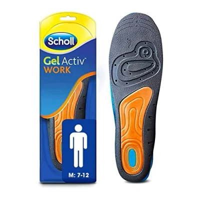 ADAPTBALE TO FIT UK SHOE SIZE 7-12: Scholl gel active work insoles for men can be trimmed to your exact shoe size between the ranges of UK 7 to 12 (EU 40-45) ABSORBS IMPACT AND REDUCES PRESSURE: Gelactiv technology provides high shock absorption and cushioning performance which is beneficial for your feet during a long work day of walking or performing daily activities ANTI-ODOUR TECHNOLOGY: Scholl gel insoles are complete with an upper coating of Freshfeet fabric so your feet will be protected against unpleasant foot odours and will be cool and dry all day long DUAL GEL: Ergonomically designed, the firm gel provides support to the bridge of the foot and heel whilst the soft gel provides cushioning and superior impact absorption COMFORTABLE ALL DAY LONG: With a sole-shape designed for all day comfort, these work insoles will prevent tired feet at the end of the day. Scholl Gel Active Work Insoles for Men are designed for continuous support not pain relief SUITABLE FOR WORK SHOES and BOOTS: Easy to insert and with a non slip design to ensure that your feet and gel insoles stay firmly in place all day