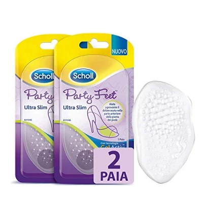 Gel bearings: Scholl Party Feet Ultra Slim are ultra-thin gel pads to protect the front of the sole of the foot all day long HELPS PREVENT PAIN These pads help prevent acute pain in the front part of the sole of the foot also caused by wearing heels TRANSPARENT: GelActiv-technology makes the gel cushion transparent, thin and discreet and fits comfortably in most women's shoes NON SLIP: Anti-slip technology, designed to not slip in the shoe Usage: The pads are reusable and washable. It is recommended to change them every six months or at the first signs of wear