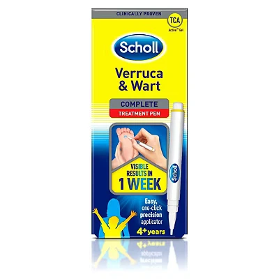 Dr. Scholl's Verruca and Wart Complete Treatment Pen is designed to offer a fast and effective solution for treating verrucas and warts on both hands and feet. This clinically proven treatment comes in a convenient 2 ml pen that is suitable for adults and children aged 4 years and older.