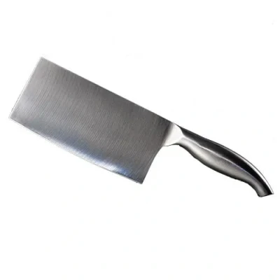 AmazonThis 7" Cleaver is made from durable stainless steel. It has a a flat grind blade. It is beautifully balanced for effortless slicing and dicing. The cleaver will give the best results when used for slicing and chopping meat, herbs, vegetables and fruit. Ergonomically designed with a comfortable handle.