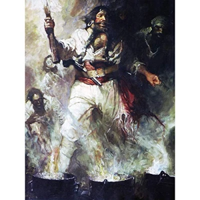 Schoonover Kunstdruck auf Leinwand, Motiv: schwarzer Bart und Rauchflammen