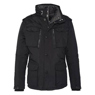 Very functional thanks to its removable placket, this field jacket is a reference to American miliary codes, resistant and timeless, it became an iconic Schott NYC piece Hidden hood under collar 2 inside pockets Schott NYC embroidered logo on upper left arm 2 chest pockets & 2 lower patched pockets with 2-way-entrance