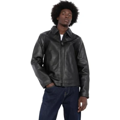 Schott Men's LC9800 Blouson Plain or unicolor Long sleeve Jacket Black Small