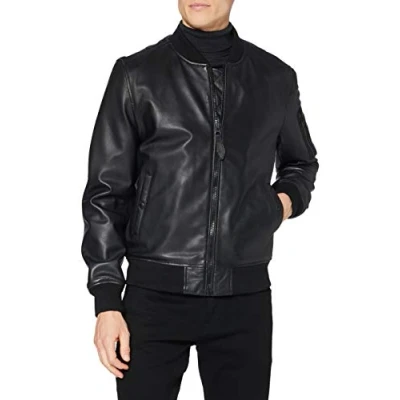 Schott NYC Men's Bomber EN Cuir Leather Jackets, Black, M