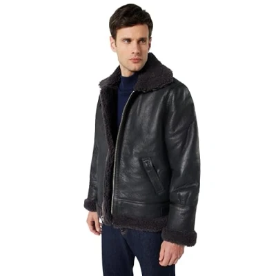Bomber jacket, type B-3 Leather welted seams, heavy duty hardware, buckled collar, waist adjustment straps, 2 front handwarmer pockets Standard fit Double face sheepskin