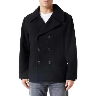 Schott NYC Men's Seacoat Pea Coat, Black, L