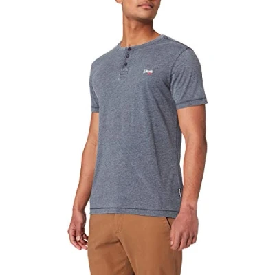Schott NYC Men's Tshirt Manches Courtes Col Tunisien T Shirt, Navy Blue, M