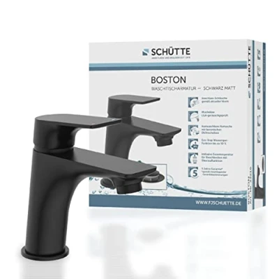 Black design: the Boston bathroom tap is a real eye-catcher thanks to its elegant matte black. Thanks to its modern design, the tap fits perfectly into any bathroom. Practical: the powder coating of the sink tap is very easy to clean. It only needs to be wiped clean with a microphaser cloth to keep the surface undamaged and free of calf. The mixer tap comes with matching drain fitting (press eccentric), which can be opened and closed at the touch of a finger. Box contents: 1 x Boston washbasin tap, 1 x push-pop-up drain set, 2 x DVGW certified connection hoses, 1 x complete mounting material, 1 x German assembly instructions (English language not guaranteed) Quality: the quality of our products as well as the satisfaction of our customers is important to us. That's why we carefully check every goods receipt and are happy to assist you with complaints and questions about the product. Shutte, as a leading German manufacturer, has been developing products for the sanitary sector for over 40 years. At our location in Wallenhorst, you can reach us with any questions or suggestions under the number: +49 (0) 5407-81529-0 – 3., Weight: 3.0644254418 pounds, Manufacturer: SCHÜTTE