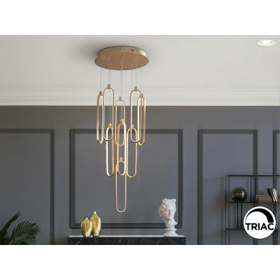 Colette LED pendant light with 9 light elements, rose gold, dimmable The Colette LED pendant light impresses with its modern design and elegant rose gold colouring. Made of high-quality aluminium and silicone, it blends seamlessly into living and dining rooms. Nine long, oval frames form the light elements, with the LEDs built into the insides. These provide an energy-saving, warm white light that creates a pleasant atmosphere. A dimmable LED driver has been installed in the light so that the lighting can also be dimmed using an external dimmer - Triac or 0-10V.