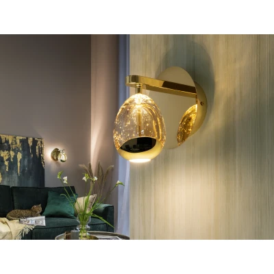 Net LightingWall lamp with 1 LED light, made of metal in gold finish. Shade with teardrop-shaped made of solid champagne glass with decorative bubbles inside. 5W LED. 480lm. 3,000K