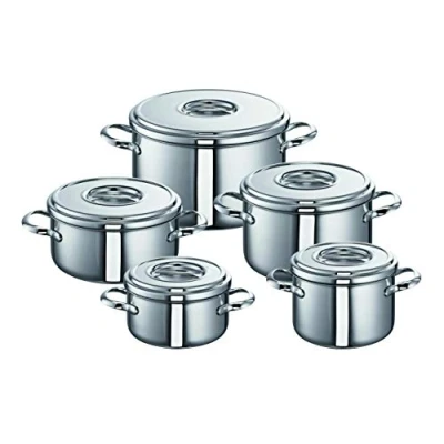 The high-quality saucepan set from Schulte-Ufer from the Romana i series should not be missing in any kitchen. . Can also be used in the oven up to 230 °C is possible without any problems. 23. The pots are Dishwasher-safe and so quick and easy to clean for the next use. contents: roasting pan Romana i 1.4 L, roasting pan Romana i 2.5 L, meat pot Romana i 2 L, meat pot Romana i 3.5 L, meat pot Romana i 5.5 L International products have separate terms, are sold from abroad and may differ from local products, including fit, age ratings, and language of product, labeling or instructions.