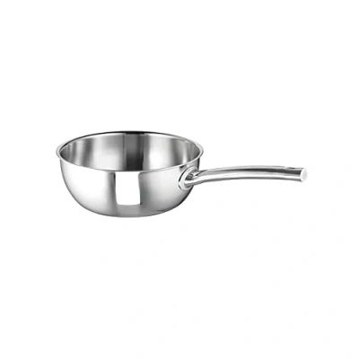 High-quality 3-layer material made of stainless steel, aluminium, stainless steel in heavy design Energy-saving integrated induction base Handy handle Rolled edge for dishwasher safe (hull) Suitable for all standard hobs, including induction and glass ceramic hobs