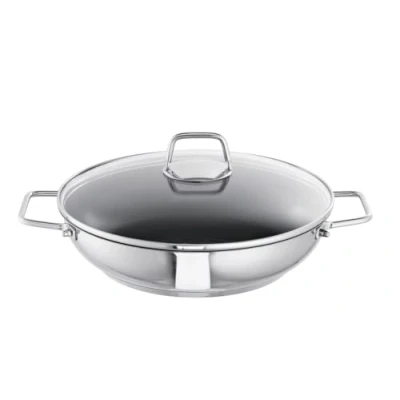 Energy-saving ecotherm aluminium encapsulated bottom High quality stainless steel, mirror polished Siegutal Plus non-stick coating, particularly resistant to scratches and abrasion, excellent non-stick effect Shatterproof and heat-resistant glass lid Suitable for all hobs including induction and glass ceramic hobs