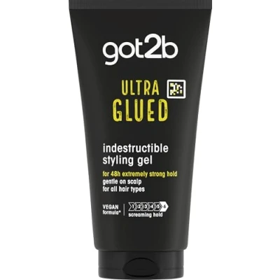 Got2b Glued Gel: Molds like gel, holds like glue! Glued Ultra Styling Gel glues the extreme look for up to 48 hours Slow-drying: This got2b styling gel for hair styling with a slow drying formula that leaves enough time to flexibly style your hair before it sets Vegan* formula: The formula of this got2b styling gel is vegan*, meaning that the formula is free from animal-derived ingredients Styling hacks: For more precise edges, it's recommended to use this got2b gel along with using our got2b Glued 4 Brows & Edges product Package contents: got2b Glued Ultra Styling Gel 150 ml, for extreme looks. 50 percent recycled plastic tube body.