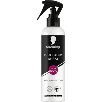 Schwarzkopf heat protection spray: This Schwarzkopf heat protection spray provides the hair with heat protection up to 230°C and is suitable for use with straighteners, curlers, and all other styling tools Anti-frizz: This heat protection spray provides the hair with a long-lasting anti-frizz effect and a natural shine look without stickiness Protection: This Schwarzkopf heat protection spray helps to protect hair from a dry hair feeling and styling tool damage, while protecting the hairstyle from humidity and wind Vegan formula: This Schwarzkopf hair styling spray is alcohol- and silicone-free with a vegan formula* Package contents: Schwarzkopf Heat Protection Spray 250ml, up to 230°C heat protection for hair, with anti-frizz effect and natural shine