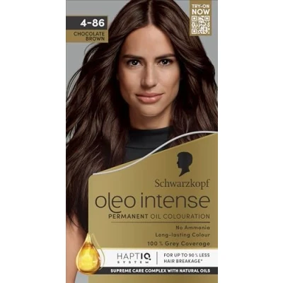 Long-lasting colour: Schwarzkopf's Permanent Oil Colouration technology infuses the colour pigments deeply into the hair fibre, for strong and healthy-looking hair with rich and long-lasting colour With HaptIQ system: This hair mask features the HaptIQ system which creates new micro-bonds within the hair, whilst enveloping it with a protective layer and strengthening it for up to 90% less hair breakage* Supreme care: With a mask containing 4 caring oils to provide ultimate nourishment after colouration and restore strength for healthy-looking hair, this permanent Oleo Intense brown hair dye leaves the hair feeling soft, silky, and shiny Chocolate Brown: This shade is suitable for medium blonde to medium brown natural hair and for all hair textures and for up to 100% grey hair. Final colour result depends on your natural hair colour Package contents: 1x50 ml tube with caring colour cream hair dye brown, 1x50 ml applicator bottle with developer lotion, 1x15 ml sachet of rich oil mask, 1 instruction leaflet, 1 pair of gloves