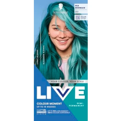 Schwarzkopf LIVE Colour Moment 097 Sea Mermaid, with HaptiQ Anti Damage System, Semi Permanent Green Hair Dye, Up to 15 Washes