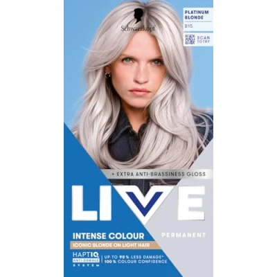 Schwarzkopf LIVE Intense Colour B15 Platinum Blonde, Long lasting Permanent Blonde Hair Dye, Iconic Blondes on Lighter Hair, With Extra No Brassiness Gloss