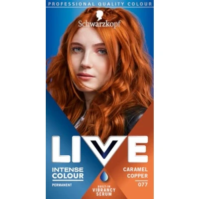 Schwarzkopf LIVE Intense Colour Caramel Copper Permanent Hair Dye 077, Long Lasting Red with Built In Vibrancy Serum, for up to 100% Grey Coverage
