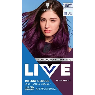 27 Advantage card points. Schwarzkopf LIVE Intense Colour U69 Amethyst Chrome Permanent Hair Dye FREE Delivery on orders over 45 GBP.