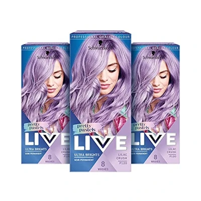 Schwarzkopf LIVE Pretty Pastels Purple Hair Dye, Pack of 3, Semi Permanent Colour lasts up to 8 washes P120 Lilac Crush