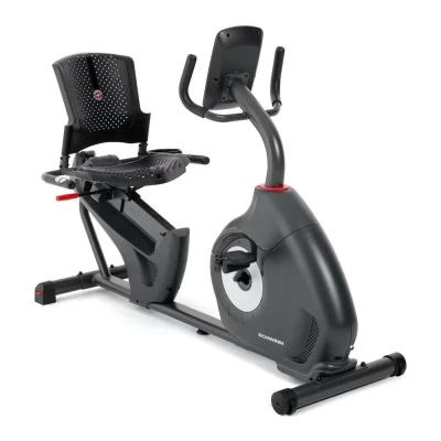 Smash your fitness goals with this Schwinn recumbent bike. Connect it to your smart device using Bluetooth and jump into custom workouts with the Zwift app. The 5.5" LCD screen keeps tabs on your progress, so you can celebrate every win - big or small. Good to know - Its 16 magnetic resistance levels and 13 workout programs give you plenty of training options for any fitness level - The Bluetooth heart rate tracking helps you stay in your zone and monitor progress - A breathable seat with lumbar support keeps you comfy, even during long sessions - When you're done, just stow it away with the transport wheels _________________________________________ Please note: Access to the Zwift app requires membership.