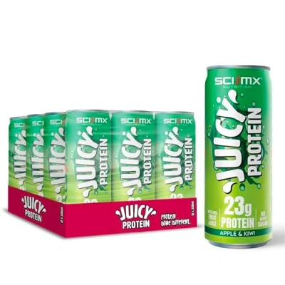 SCI MX Juicy Protein Sparkling Water with 23g Apple & Kiwi Flavour 330ml x 12 High Drink Low Calorie No Added Sugar Made in UK Spring