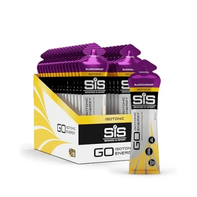 Blackcurrant Flavour Running Gels: Includes 60ml Science In Sport GO Isotonic Energy Gel (30 Pack), energy gels for running, blackcurrant flavour High Carbs: Isotonic gel contains 22g of carbohydrates per sachet for an easily digestible and quick supply of carbs for energy during exercise Low Sugar: Energy gels replace energy quickly and efficiently during bouts of intense exercise without leaving you feeling bloated because of less than 1g of sugar per sachet Vegan Approved: Gluten-free vegan gels for runners have natural flavours, along with added sodium, added maltodextrin and 87kcals per serving for running gels energy Pioneer in Sports Nutrition: Since being established in 1992, Science In Sport has been an industry-leading company, working with research institutes, elite athletes, performance directors, and sports scientists