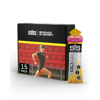 Science In Sport GO Isotonic Energy Gels, Running Gels with 22g Carbohydrates, Low Sugar, Fruit Salad Flavour, 60ml Per Serving (15 Pack)