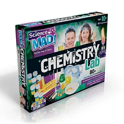 SCIENCE MAD SCIENCE KITS RANGE - All of our Science Mad Kits offer real experiments, based on proper scientific principles, with in-depth instruction manuals providing step-by-step guidance and inspiration. These kits will encourage children to further develop their knowledge and interest in science and make great gifts ENJOYMENT THROUGH EXPERIMENTATION - This Science Mad Chemistry Lab is perfect for boys and girls ages 10+! Discover the wonders of chemistry with this educational and exciting Chemistry Lab. It comes with a wide variety of different chemicals and apparatus, plus a step-by-step manual containing over 50 pages. Have fun whilst learning with this educational science kit. 10 CHEMICALS & LAB APPARATUS INCLUDED – It’s a really well-equipped laboratory set with a great selection of 10 different chemicals, real methylated spirit burner to help when learning about the fascinating chemical reactions involving heat. Plus, there are glass test tubes and vessels and other apparatus to provide a more realistic laboratory experience. 80 SAFE LAB EXPERIMENTS - Perform 80+ safety-tested, themed experiments, all clearly planned and set out within the detailed instructions manual. Practise and expand your chemistry skills and knowledge with experiments that get more challenging and stimulating as you progress through the manual. STEM LEARNING FOR KIDS - All Science Mad products are designed specifically for children. Science, Technology, Engineering and Maths! Science Mad! products are all built with learning and fun at their heart., Manufacturer: Science Mad