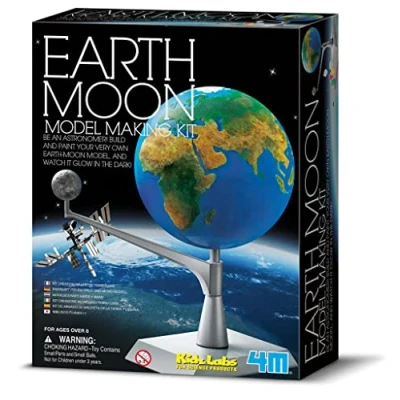 Study like a real astronomer and build and paint your very own 3D earth and moon model for display in your science room, or living room, or bedroom Turn out the lights to watch this cool science craft glow in the dark and find out all the scientific fun this kit can offer Learn about the Moon's phases, lunar eclipses and more. This kit includes an Earth model with geographical relief, moon model, a stand with rotating arm, paints, and a brush 4M products are made to stimulate, entertain, and educate young minds Suitable for children ages 5 and above, Manufacturer: 4M