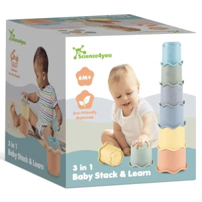 [EVERYDAY BABY TOY] Works as a baby toy for daily play, supporting interaction at home and on the go. [LEARNING THROUGH PLAY] Stacking and sorting baby stacking cups help explore shapes, colours and sizes during play. [AGE 6 MONTHS +] Designed as a stacking toy for babies from 6 months, adapting to different stages of development. [STACK AND LEARN] Babies can build, knock down and rebuild towers using stacking cups, encouraging exploration. [PRACTICAL USE] Suitable for indoor play, bath time and beach activities, fitting easily into daily routines., Manufacturer: Science4you