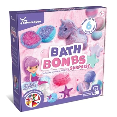 [BATH BOMBS MAKING KIT FOR KIDS] - Use the 14 contents included in this science kit for kids age 6 and learn how to create natural, aromatic and relaxing bath bombs with different shapes and colors. Learn how to make your own sparkly bath bombs with a suprise figure. [MAKE YOUR OWN BATH BOMBS IN FORM SPHERICAL OR 3D UNICORN] - In this bath bomb making kit you can create incredible figures such as the famous spherical shape, as well as making a unicorn in 3D format. Enjoy creating your own bath bombs and then use them during your bath. [BATH BOMBS ENCHANTED CREATURES EDITION] - Make your own bath bombs with a briquendo inside. See how it grows up to 3 times bigger during your bathing experience. [KIDS SCIENCE BEAUTY EXPERIMENTS] - With the 6 cosmetic experiments and moulds of this bath bomb factory and science lab for children you can create natural bath bombs and discover the science behind these relaxing bath bombs ideal for a spa set for kids. [SUPER COMPLETE TOY FOR CHILDRENS: ARTS + CRAFTS + SCIENCE + EDUCATIONAL] - This kit combines four different types of toys in one: 1) Arts kit; 2) Craft Kits; 3) Science Cosmetic Experiments; 4) STEM Educational Toy. A fun bath bombs making kit toy. [EDUCATIONAL BATH BOMBS GIFT SET TOY FOR KIDS ] - Inspired by the STEAM methodology (formerly known as STEM toy). STEAM stands for Science, Technology, Engineering, Arts, and Math. These educational shower toys help kids reacquire knowledge in these 5 areas, stimulating their skills while playing. [ORIGINAL COSMETIC GIFTS FOR GIRLS AND BOYS] - This Craft kit is an original Christmas or Birthday or Easter present for kids. A Bath Bombs making kit gift for everyone who loves the world of Arts and Crafts, and bath bombs., Manufacturer: Science4you