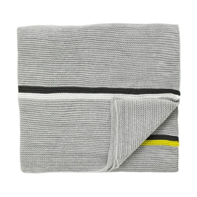 WallpaperDirectA cosy and contemporary knitted throw featuring a simple dark grey, citrus and ivory stripe. Co-ordinates perfectly with the Mr Fox Silver bedding collection.