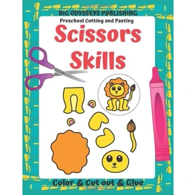 Scissors Skills Preschool Cutting and Pasting Color & Cut Out Glue: 50 Animal Designs. A Fun Practice Activity Workbook for Kids Toddlers ages 3 to 5. Develop Fine Motor while Playing