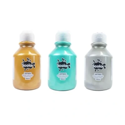 scola Readymix Water Based Tempera Paint, 3 Assorted Metallic Colours, 150ml Bottles, Non Toxic Poster Paints, Craft Projects, Suitable for 3+
