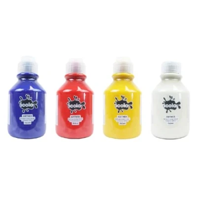 A must-have for your arts and crafts box! All Scola paints come in 30% recycled plastic bottles Use straight from the bottle or dilute with water for a colour-wash effect Dries to a matt finish. Mix with PVA to achieve a glossy finish Colours: Red, Blue, Yellow and White