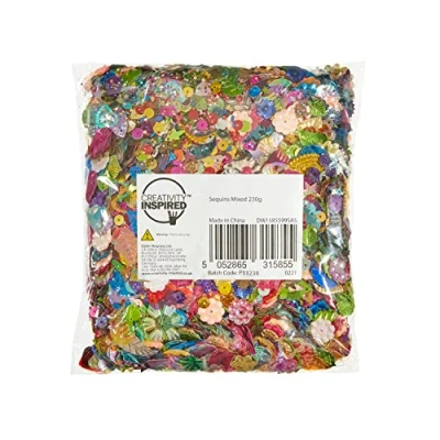 230g bag of assorted spangles and sequins - mix of colours, shapes and sizes - a real array of sparkles! Add a little shimmer and shine to any project you are working on Whether you are working on adding embellishments to fabric or scrapbooking, plastic sequins can be glued or pinned to nearly all surfaces Perfect for a variety of art and craft projects Ideal for children, hobbyists and professional crafters