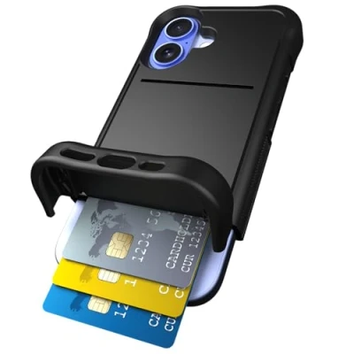 Scooch® for iPhone 16 Case with Card Holder, Wingmate Wallet Hidden Slot and RFID Protection up to 4 Cards, 10 Foot Drop Protection, Black