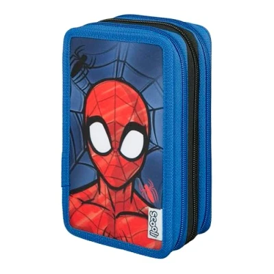Scooli Triple Spider Man School Pencil Case Filled with Pencils and Accessories, Ideal for School, Leisure Travel from 6 Years Old, Man, 19 x 12 7 cm