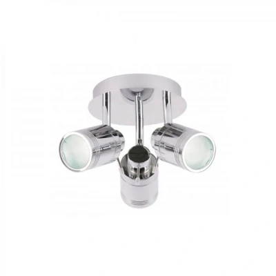 ManoManoGeneral description Modern Polished Chrome Round Bathroom Lights featuring a sleek design and three adjustable lamps for optimal lighting. Technical specifications Model Number: SPA-27405-CHR Brand: Forum Finish: Chrome Material: Steel IP Rating: IP44 Height: 18cm Width: 26cm Depth: 26cm Lamp Type: GU10 Number of Lamps: 3 Weight: 1.275kg Wattage (max): 35W