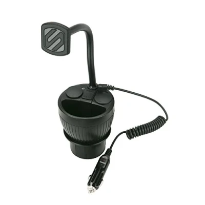 Car Phone Holder Mount: Safely and quickly secure a mobile device with the mount’s adjustable base to almost any vehicle's cup holder Magnetic Mount: Car magnetic phone mount comes with powerful Rare-Earth neodymium magnets that keep a secure grip to your devices Flex Neck: The flexible neck provides customizable viewing options for your mounted device Adjustable Base: The bottom portion of the mount base rotates to reduce in size, and the top portion rotates to expand in size for a secure fit in any cup holder Included in Package: (1) Magnetic Mount and Cup Holder Power hub, (1) 12V Car Power Adapter with cable, (1) Small MagicPlate, (1) Large MagicPlate, (1) Protective film, (1) Alcohol cleaning wipe and (1) User manual; backed by Scosche's Lifetime Tech Support and a 3-year warranty