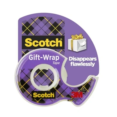This unique, satin-finish wrapping tape disappears on most gift wrap papers. Easy to hold and cut thanks to a refillable hand-held dispenser, it sticks strongly and keeps your gifts wrapped securely Wrap all your gifts with this special clear tape. On birthdays and any other special occasion, your loved ones will receive beautiful gifts with a smooth and finished look Scotch GiftWrap Tape is strong and secure, and its unique satin finish gives your giftwrapping a smooth, well-finished look. It helps you make your gifts look nicer A tape for every task - with a history of quality for the last 90 years, Scotch Brand has a tape to fit every task - helping you to hang, wrap, repair, create, seal and more Pack contains 1 roll of unique GiftWrap satin-finish tape, measuring 19 mm x 16.5 m. The roll is supplied on a pre-loaded, refillable dispenser: the tape glides off the roll smoothly and cuts easily A satin finish tape that disappears on most gift wrap papers Easy to dispense Sticks securely Hassle free for beautiful, effortlessly wrapped gifts Pack of one roll, measuring 19 mm x 16.5 m and supplied on a pre-loaded dispenser