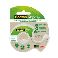 Experience the next level of adhesive solutions with Scotch Magic A Greener Choice Tape, the environmentally friendly evolution of the original Scotch Magic Tape. This innovative tape is crafted with 53% renewable materials and features a plant-based, solvent-free adhesive. Additionally, its packaging is made from 100% recycled cardboard, and it comes with a plastic core that also prioritises sustainability. This makes it an exceptional choice for those who are conscious about their environmental footprint while still needing a reliable adhesive.