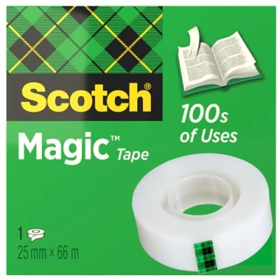 Scotch Magic Tape, 1 Roll, 25 mm x 66 m General Purpose Sticky Tape for Document Repair, Labelling & Sealing